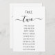 In the upper part, there is the table number written in a handwriting script and the word Table above, in smaller caps (hand letters). Under them, there are the 10 guest names, in similar hand letters. The background is white, all text is black.