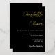A sophisticated wedding invite featuring elegant calligraphy letters in actual gold foil on a black background. This is part of matching wedding suite that you can fully personalize.