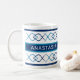 A unique contemporary designwith simple fish line drawings in shades of blue on a striking white background. This is a lovely coastal themed design and would be a great gift for anyone who loves to escape to the coastal getaway and who loves ocean themed decor. Fully customisable for name and background colour.