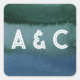 Elements: abstract watercolor wash background. Names and details appear in modern sans serif fonts. Back features photo and RSVP QR code. Colours: blue, green, emerald, ocean, sea green, navy, royal blue, azure. Themes: modern, minimalist, contemporary, jewel tones. Collection: Modern Minimalist Blue Teal Photo Wedding Collection. Product Type: Names Sticker