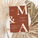 Modern Minimalist Boho Terracotta Wedding Invitation. Features bold monogram typography and minimal graphic design. Personalize text with all the details of your special day.