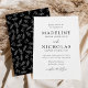 Elegant, modern wedding invitations featuring your wedding details in black lettering with handwritten calligraphy accenting the design. The simple wedding invitations feature a white background. The black and white wedding invite reverses to display a beautiful foliage pattern. The invitations are perfect for spring and summer garden weddings.