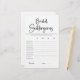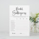 Personalize your bridal shower or bachelorette party with our Modern Minimalist Bridal Shower Scattergories Game card, featuring fully customizable wordings for a unique and tailored experience. This minimalist black-and-white design adds sophistication to your celebration, ensuring a memorable and fun-filled event for all involved.