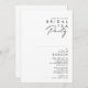 This Modern Minimalist bridal tea party invitation is perfect for your classy boho party. Its simple, unique abstract design accompanied by a contemporary minimal script and a white and black colour palette gives this product a feel of elegant formal luxury while staying simplistic, chic bohemian. Keep it as is, or choose to personalize it with artwork or graphics of your choice. You can also look to other products within this collection to bring your whole wedding together!
