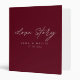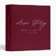 Modern Minimalist burgundy Wedding binder with elegant script . Design features an handwritten font and modern minimalist design. To change details, click "Personalize".