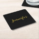 Modern Minimalist Calligraphy Name Black Gold Square Paper Coaster