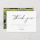 Modern minimalist thank you card with elegant calligraphy font and a photo on the reverse.