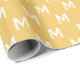 custom monogram pattern wrapping paper in cream and gold. Perfect for a personalized christmas gift wrapping or for any holiday celebration or birthday gifting. It also features a modern minimalist font for the retro lovers and contemporary minimalists. This Gift Wrap will make an unforgettable and unique gift wrapping.