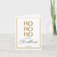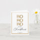 This elegant and modern Christmas card features a bold "HO HO HO" in eye-catching gold glitter-style text, framed by a sleek, thin gold foil border. The message "Merry Christmas" is displayed in a stylish combination of serif and script fonts, offering a sophisticated and festive greeting. The card also includes space to personalize with your family name and the year, making it a thoughtful and customized holiday greeting. With its clean, minimalist design and luxurious gold accents, this card is perfect for those who want to send a chic, timeless message that exudes holiday cheer.