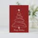 A modern minimalist design of a Christmas Tree with snow on a dark red background, with a Merry Christmas greeting.