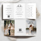 This elegant tri-fold wedding invitation features refined calligraphy and modern typography in a clean, minimalist layout. The delicate botanical crest monogram adds a timeless romantic touch while keeping the overall design chic and sophisticated. The tri-fold format provides generous space to include ceremony details, wedding timeline, venue information, icons, and a convenient QR code linking to your wedding website. A beautiful photo section on the back adds a personal touch, making this design perfect for modern, classic, or formal celebrations. Stylish, practical, and thoughtfully designed, this invitation allows couples to share all essential wedding information in one elegant piece of stationery.
