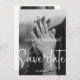 Announce your special day in style with this elegant black and white Save the Date card. Featuring a romantic engagement photo backdrop, modern typography, and customizable names and date, it's the perfect first impression for your wedding celebration. Ideal for couples who love a clean, timeless aesthetic.