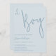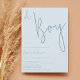 This minimalist boy baby shower invitation template, features a modern handwritten font in a dusty blue.
