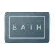 If you like a simple style for your bathroom decor, this bath mat may fit your needs. It is a simple design with a light blue background and white frame border. The text is "Bath" in white block letter style. Customize colour of background and texts of you wish.