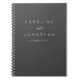 This sleek wedding notebook features a minimalist black cover with elegant white text, personalized with the couple’s names and wedding date. The clean serif and script typography adds a modern touch, perfect for organizing to-do lists, timelines, and inspiration. Ideal for engaged couples planning a chic, contemporary celebration. A thoughtful engagement gift or stylish planning tool.