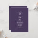 A modern minimalist design featuring your special date and wedding details set in classic, chic typography on a purple background. Designed by Thisisnotme©