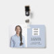 Staff employee customer support/customer service identification badge which can be personalized with the inclusion of your employee details, employee photo, employee job title, company logo and on the back your company address, email contact and website address. The design is minimalist and professional and could be used for any business corporate setting.