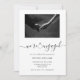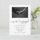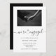 Simple and modern black and white "we're engaged" engagement party invitation card with hand-painted watercolor wedding ring and couples photo