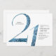 Modern minimalist 21st birthday party invitation features stylish faux blue glitter number 21 and your party details in classic serif font, simple and elegant, great surprise adult milestone birthday invitation.