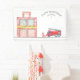 A cute red fire engine Birthday invitation featuring your child's name and age. You can edit all of the text.