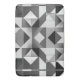 This design features a sleek, modern geometric pattern in black, white, and shades of grey.