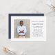Simple minimalist blue and white graduation party invitation, with graduate's photo and classic text.