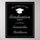 Stylish graduation party welcome sign. Stylish modern minimalist black white design with art deco like thin frame.