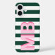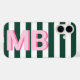 Create your own custom monogram iPhone case featuring your personalized initials on a striped background.