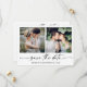 Modern Minimalist yet Elegant Calligraphy Ink Pen Script 2 Photo Wedding Engagement Announcement Save The Date Card with your QR Code wedding website address on back of card