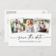 Modern Minimalist Ink Script 3 Photo Save The Date Postcard