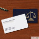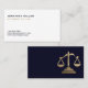 Make a lasting impression with our Modern Minimalist Lawyer Business Cards featuring classic navy blue and golden typography on a clean white background. The back features gold justice scales on a dark navy blue background. Designed for attorneys, law firms, and legal professionals, they represent professionalism and attention to detail.