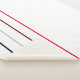 This modern minimalist white sherpa blanket features thin vertical lines in black, grey, and red. Great for contemporary bedrooms.