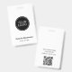 This customizable employee name tag features a bold centred logo, clear name and job title, and a functional back with QR code and company details.