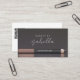 A chic modern makeup artist business card, featuring a script typography, and makeup artists eyeliner and brow brush. Elegant and simple with touches of coral peach and smoky grey. White on the back, with contact information, QR code and social media.