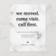 Classic plain moving announcement. We moved, Come visit, Call first Moving announcement