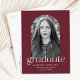Invite guests to your graduation party with our chic photo graduation party invites. The stylish graduation party invitation postcards feature the graduate's photo framed by a maroon arch-shaped frame. "Graduate" is displayed in white modern italicized lettering. Personalize the front of the trendy graduation party invitation by adding the graduate's name, school name, and graduation year. The postcard invite reverses to display your return address and graduation party details.