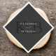 Monogram wedding napkins featuring modern minimalist typography name and initials in matte black colour design.