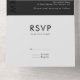 The bottom of the invitation features a separate section for the RSVP card, maintaining the same modern and minimalist design with black text on a white background.