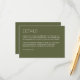 Modern Minimalist Moss Green Wedding Enclosure Card