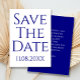 Modern Minimalist Navy Blue Save The Date Invitation. The design tool allows you to modify text elements and colour to your preference.