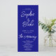The front of the program features a tasteful combination of block lettering, script lettering, and well-thought-out spacing. This design element ensures that every word stands out against the deep navy blue background, creating a visually captivating and modern aesthetic. The minimalist approach allows the beauty of your love story to take centre stage.