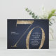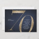 Modern minimalist 70th birthday party invitation features stylish faux gold glitter number 70 and your party details in classic serif font on navy blue background, simple and elegant, great surprise adult milestone birthday invitation.