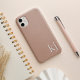 Modern minimalist design in chic earth tone neutral colours features your initials or monogram in clean, simple lettering along the bottom, layered with a deeper colour for a 3D look.