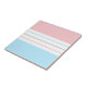 This cute ceramic tile features a minimalist linear design with bold pastel pink, white and light blue stripes with thin lines in matching shades over the white stripe. The colours are fully customizable by clicking on the Edit button.