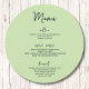 Modern Minimalist Pastel Wedding Table Circle Menu in Tea Green Colour