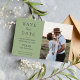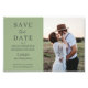 Trendy elegant budget wedding save the date announcement photo budget card (NO ENVELOPES INCLUDED) with modern typography script and your custom image over a sage green simple background. +++++++++++ Easy to personalize with your engagement picture and details! ++++++++++ You have the possibility to change the colours of the script to match your wedding colour palette. +++++++++++++