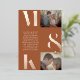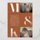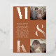 Modern minimalist wedding design is all about simplicity and elegance. It emphasizes clean lines, neutral palettes, and a focus on the essentials. This design in trendy burnt orange colour uses minimalist style typography with customizable couple photos and bold monograms. Whether you're planning an intimate ceremony or a large reception, modern minimalist design is a perfect choice for couples who want to create a timeless and sophisticated atmosphere for their wedding celebration.
