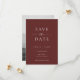 This wedding save the date card features a minimalist and modern style. The front has a clean Burgundy background with classic White typography, combining bold serif fonts with a touch of script for a refined look. The back showcases a black-and-white photo of the couple with text overlay, creating a romantic and timeless design.