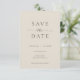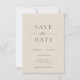 This wedding save the date card features a minimalist and modern style. The front has a clean Ivory Beige background with classic Warm Grey typography, combining bold serif fonts with a touch of script for a refined look. The back showcases a black-and-white photo of the couple with text overlay, creating a romantic and timeless design.
