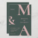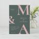 Modern Minimalist Pink Green Wedding Invitation. Features bold monogram typography and minimal graphic design. Personalize text with all the details of your special day.